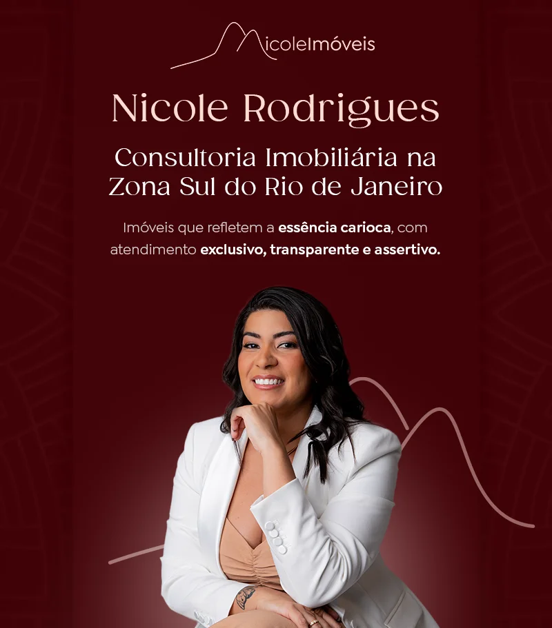 Sou Nicole Rodrigues, corretora de imóveis com 14 anos de atuação no mercado carioca, especialista nos bairros de Ipanema e Leblon.